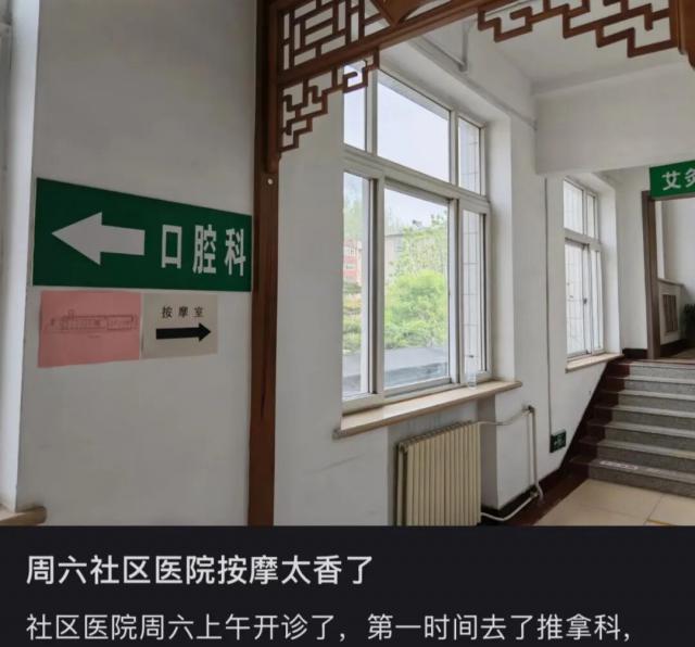 随着年轻人开始血脉觉醒",社区医院逐渐成了打工人的"养生天堂"。在社交媒体上,越来越多年轻人分享自己去社区门诊过周末的经历。