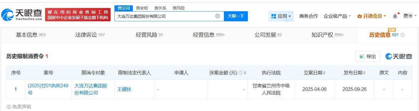 天眼查天眼风险显示奕道配资,9月26日,大连万达集团股份有限公司及其法定代表人王健林新增一则限制消费令,执行法院为甘肃省兰州市中级人民法院。案件流程信息显示,今年7月,大连万达集团股份有限公司等已因此案被执行1.86亿余元。值得注意的是,目前,王健林已被移出限制消费令名单。